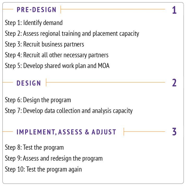 We’re all crazy busy and are feeling under increasing pressure to do more with less. No one, whether they work for a non-profit or public agency or a private organization, will remain committed to and engaged in a group for very long if the work isn’t aligned in some way with the mission of their organization and if they don’t have relevant resources or expertise to contribute to the group. There just isn’t enough time in the day or week. Every member of the partnership should be able to articulate what they or their organization will gain from participating and what they are bringing to the table that is essential for success. In our RFPs we always insist that a sector partnership include businesses that have a current and likely ongoing need for workers in the targeted occupation. The business members have the most information about the skill requirements for the occupation and about hiring practices and organizational culture. They should certainly participate in the program design and can often play a role in instruction, particularly if they can contribute a skilled worker who also has been trained in effective teaching methods. But there are many other areas of expertise that are essential for an effective industry sector program and are not likely to be in a business member's wheelhouse. These include recruitment, assessment, social services, case management and career coaching, work readiness skill building, contextualized literacy, numeracy, English-language proficiency, and job development. We’re currently working with eight partnerships whose members are engaged in a rigorous program design exercise in which they are assessing and revising every element of their programs to ensure that they meet the requirements of their target occupations and the needs of their target populations. We’ve been learning along with them - our colleague Anthony Britt discussed the essential elements of program design in his blog in May. We’ve also developed an outline of the phases of industry sector program development and some suggested steps.